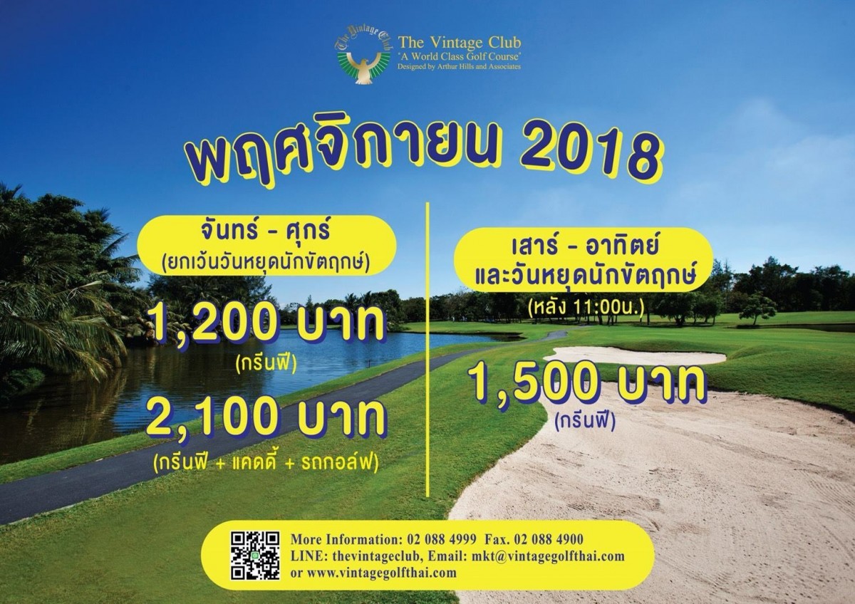 สนามกอล์ฟเดอะ วินเทจ คลับ อ.บางบ่อ จัดโปรโมชั่นพิเศษประจำเดือนพฤศจิกายน 2561